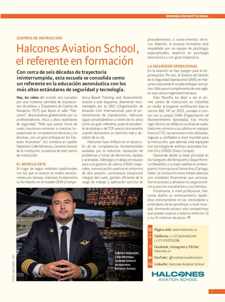 Halcones Aviation School fue destacado en el especial de aviación de la revista Semana, una edición que reúne a las instituciones, empresas y líderes que están impulsando el desarrollo del sector aeronáutico en Colombia.