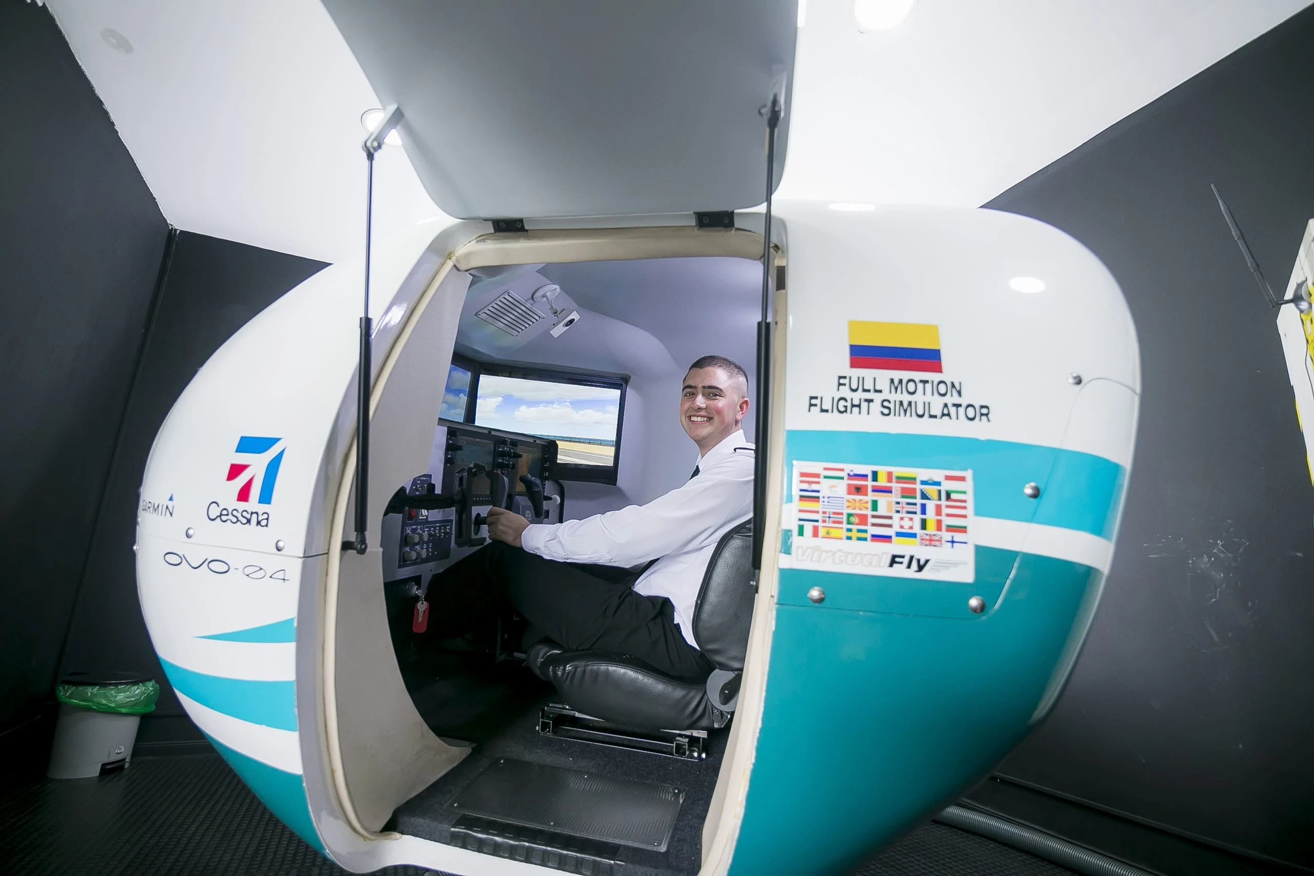 Inicias con la fase teórica en tierra, preparándote para tus 42 horas de vuelo real. Nuestro compromiso es la eficiencia: en solo 2 meses, estarás listo para iniciar tu entrenamiento en el aire. Como valor agregado, recibirás tutorías de adaptación al Cessna C172 con 6 horas en nuestro simulador de vuelo OVO 04 full motion, único en Colombia, optimizando tu preparación del avión antes de volar.
